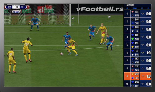 Bet on your favourite teams for the top European leagues in our Virtual Football game and enjoy Ultra HD match videos.
